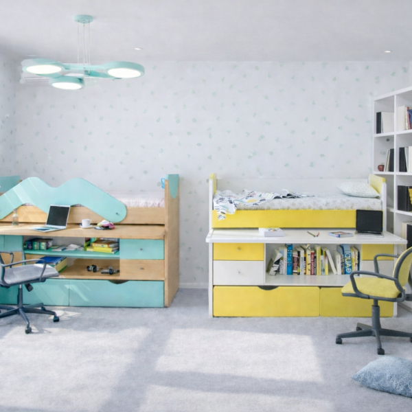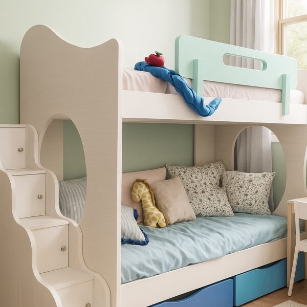 Ο σχεδιασμός της παραπέμπει σε ένα όμορφο σπιτάκι, με το πάνω μέρος να σχηματίζει μια κομψή σκεπή από ξύλο, που προσφέρει ζεστασιά και μοναδικότητα στον χώρο. Επιπλέον, τα δύο ανεξάρτητα μονά κρεβάτια μετατρέπονται εύκολα σε κουκέτα, δίνοντας τη δυνατότητα για μέγιστη αξιοποίηση του διαθέσιμου χώρου.